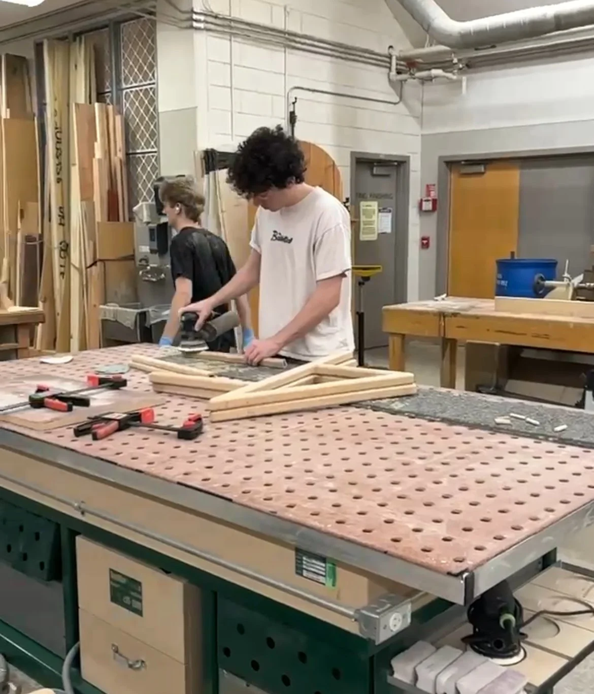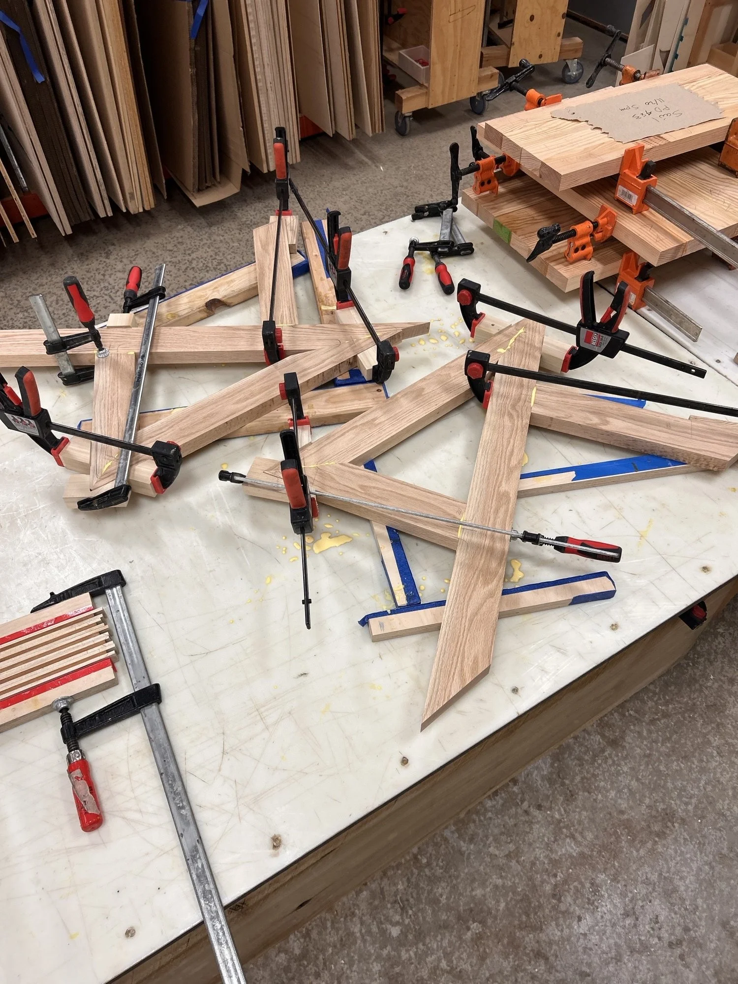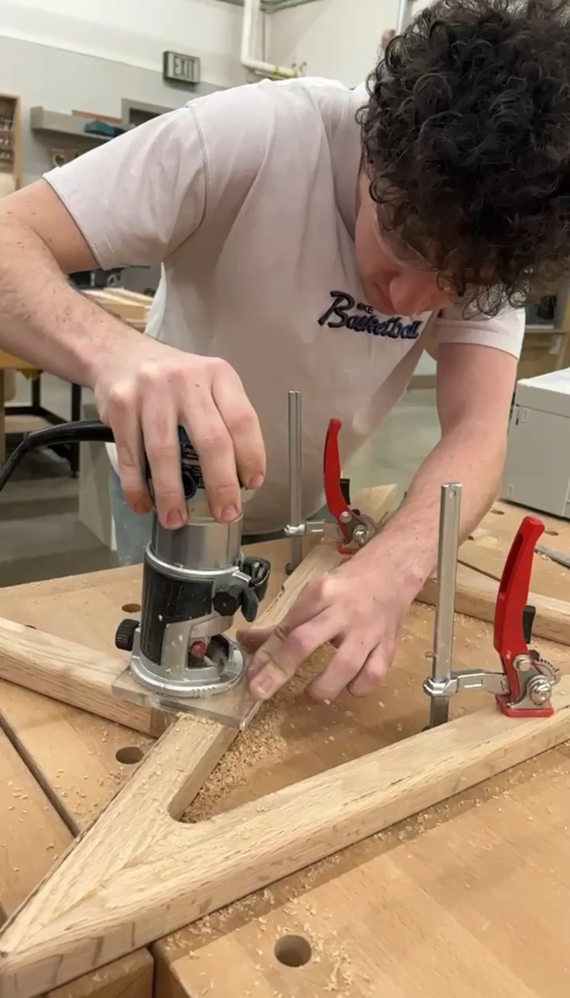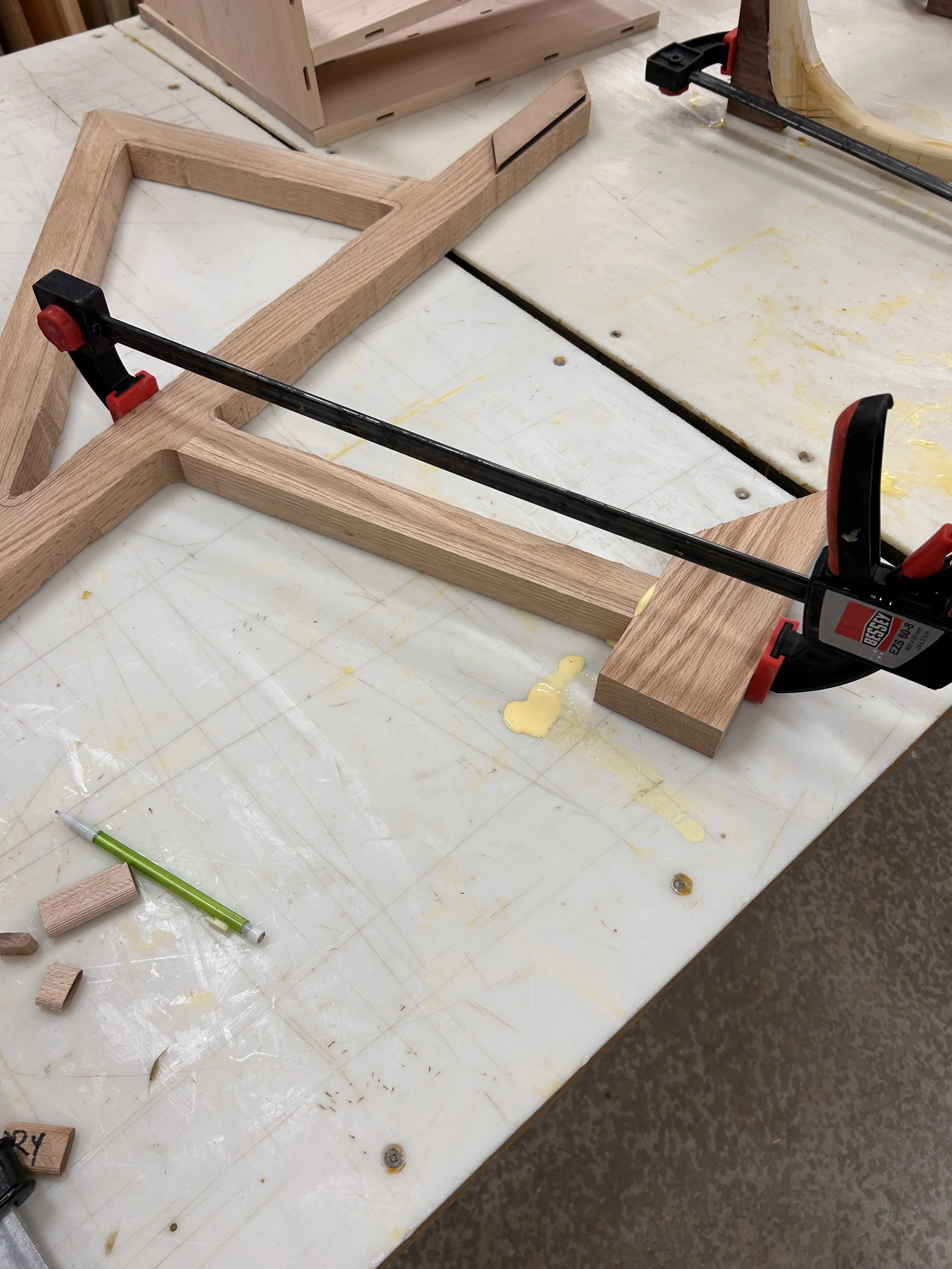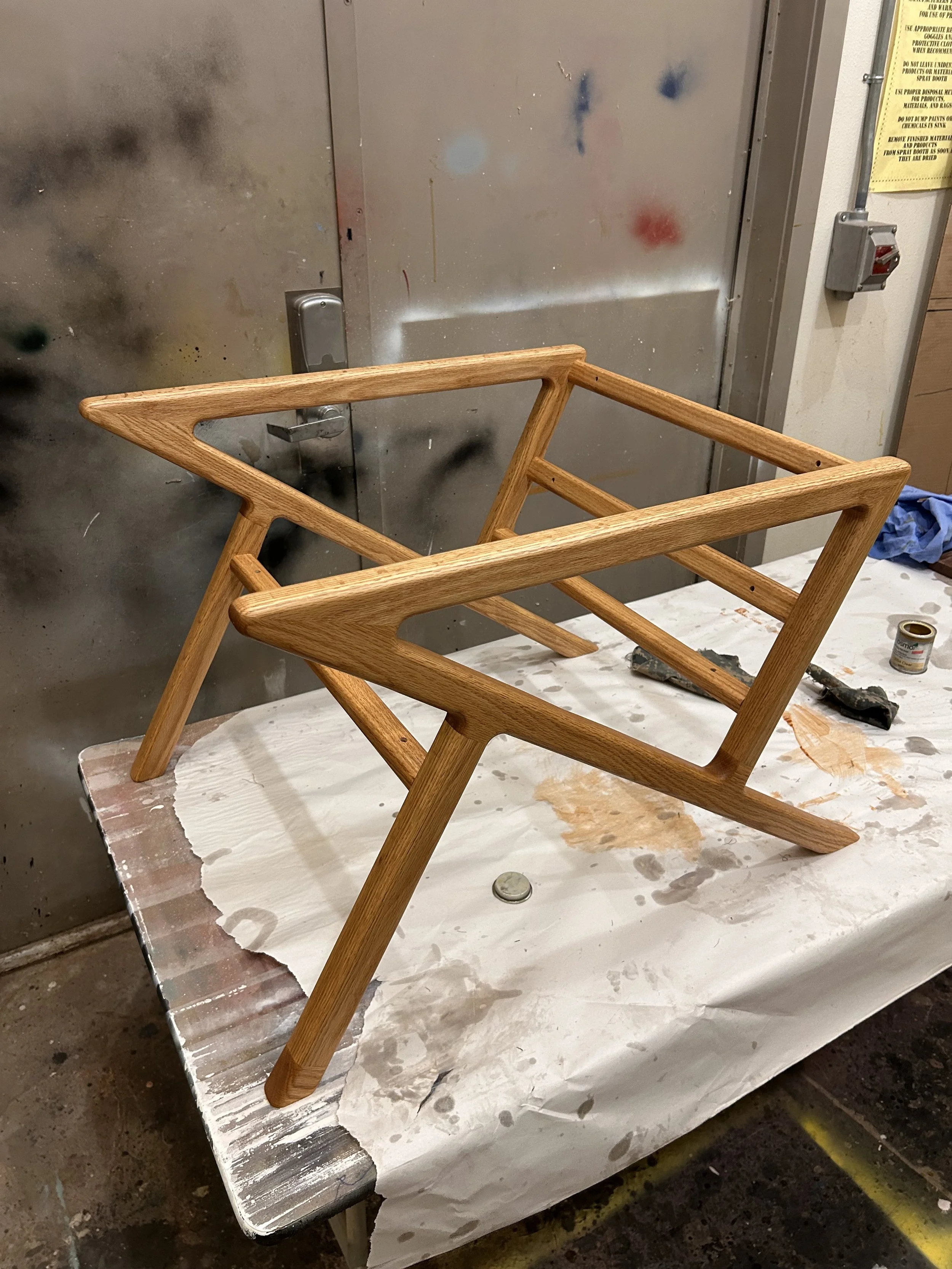 The upholstery is meant to mimic the grain of the wood, matching the aesthetic and grain direction to create a sleek and directional look.