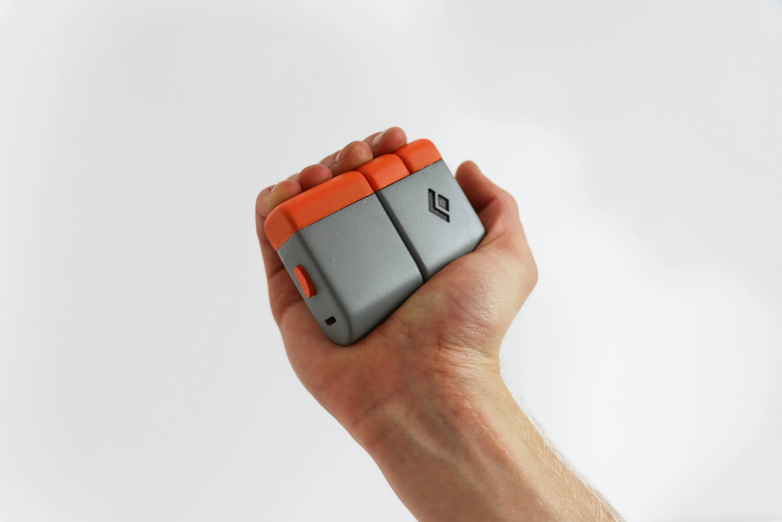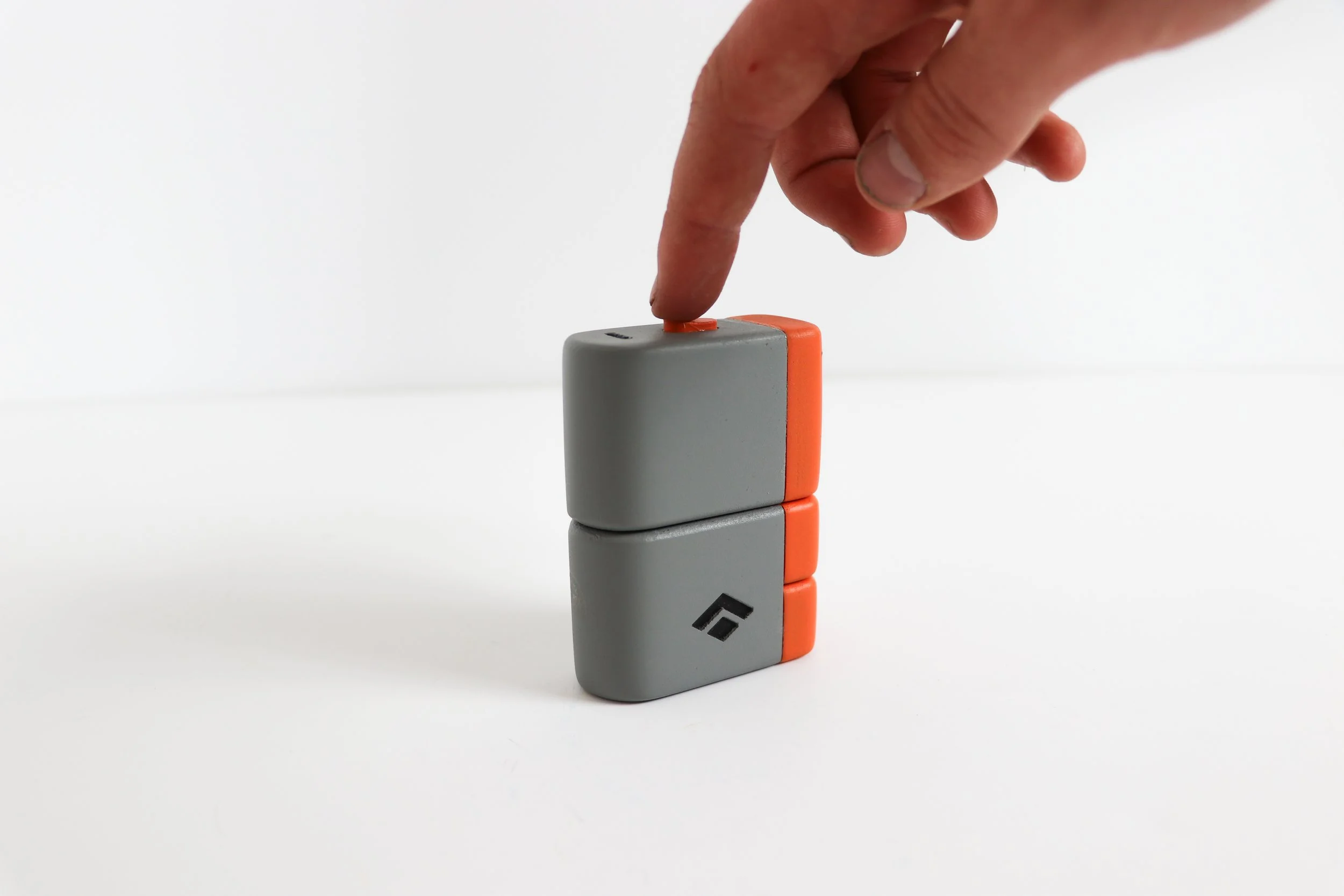 One important aspect of this project was to design your product in the language of a relevant brand, for which I decided to go with Black Diamond. I think the form and color palette really fits the aesthetic of Black Diamond, with the their classic orange color hinting at where to place your fingers and interact with the product.